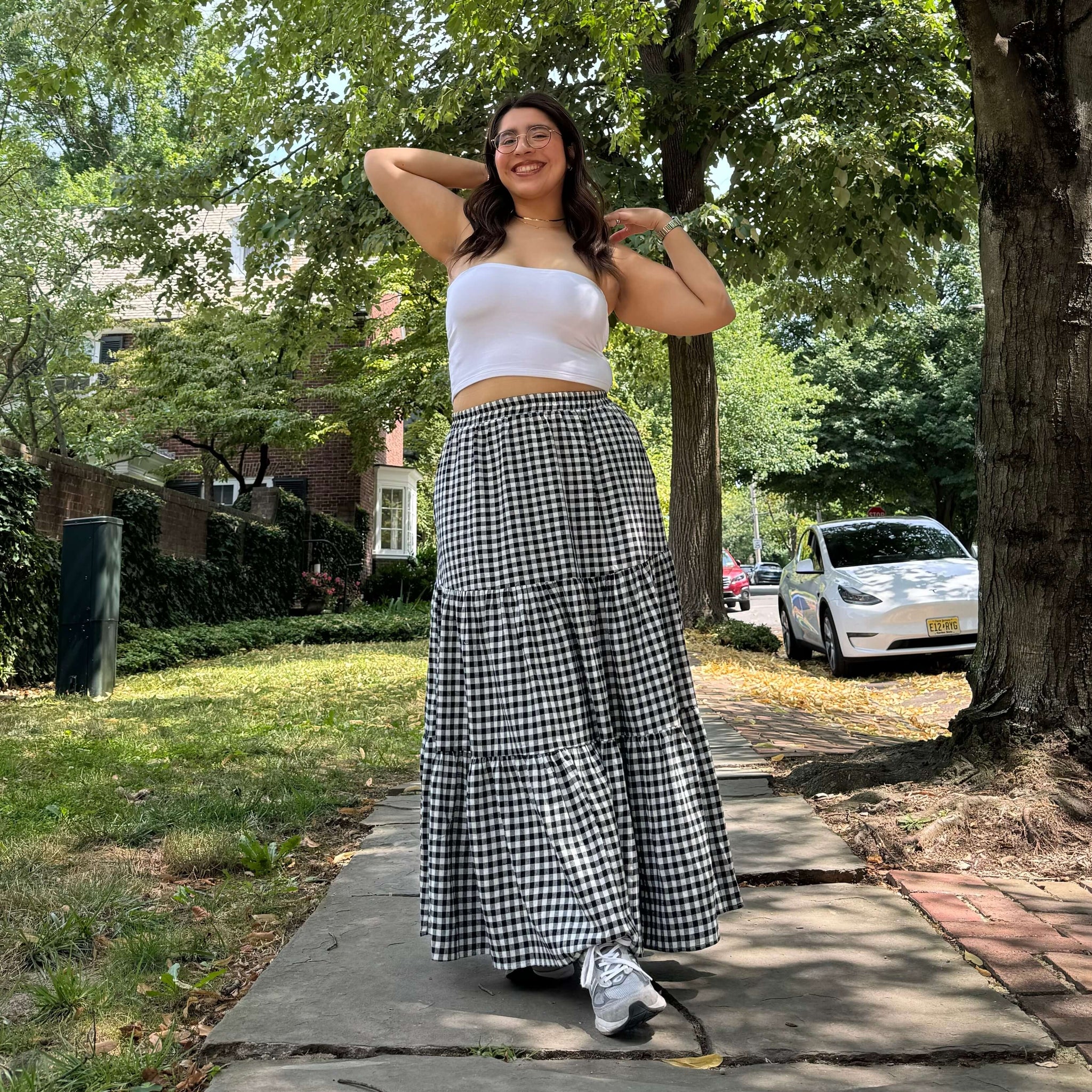 Gingham Long Skirt - Black
