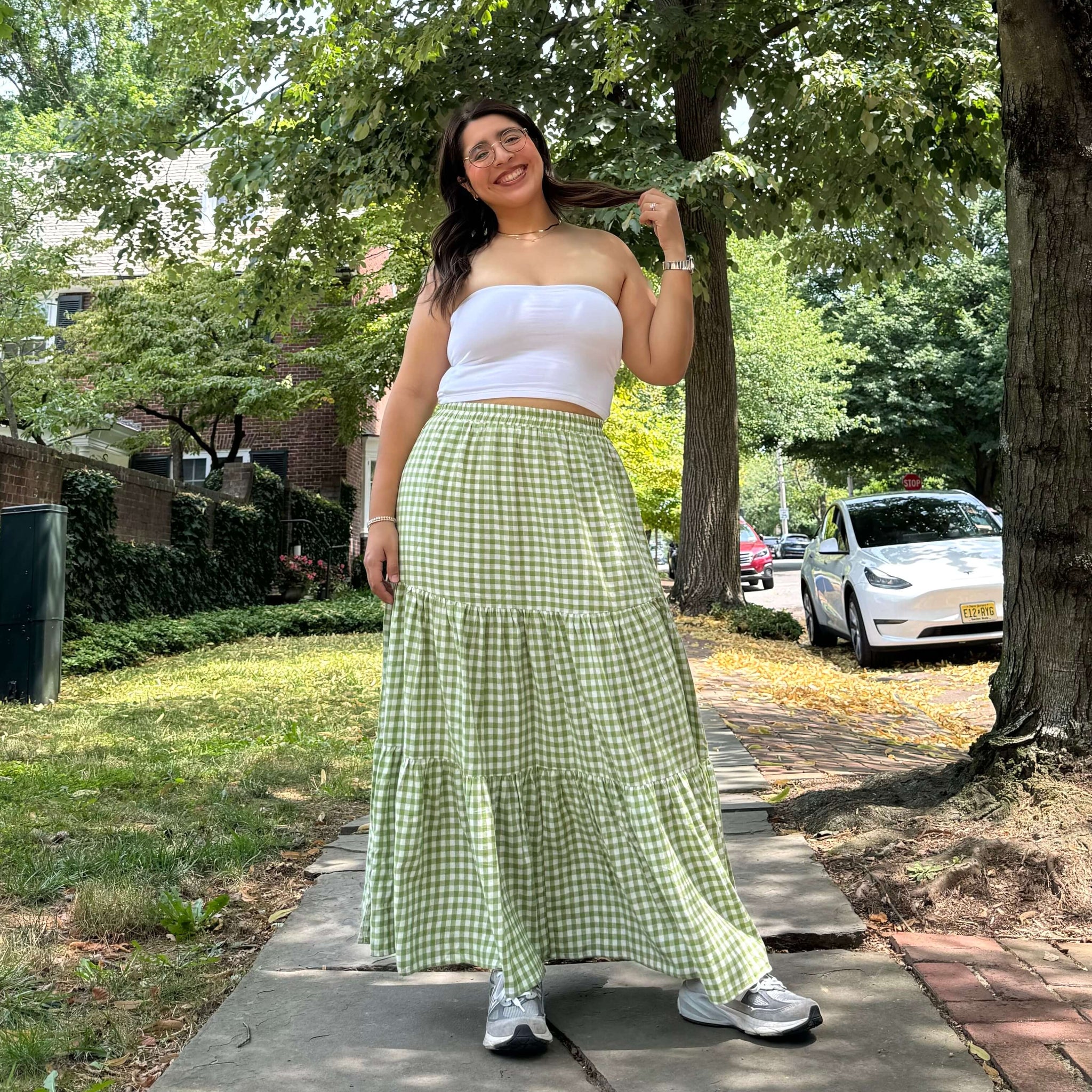 Gingham Long Skirt - Matcha