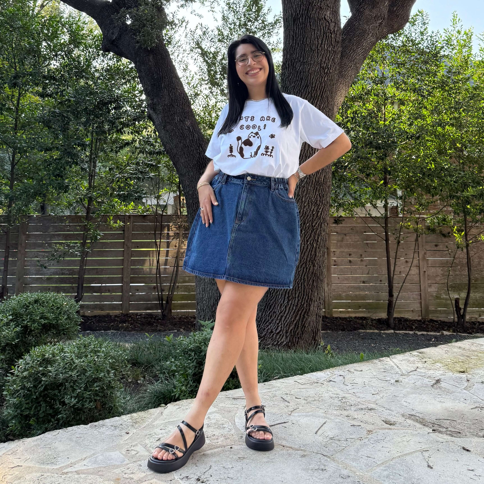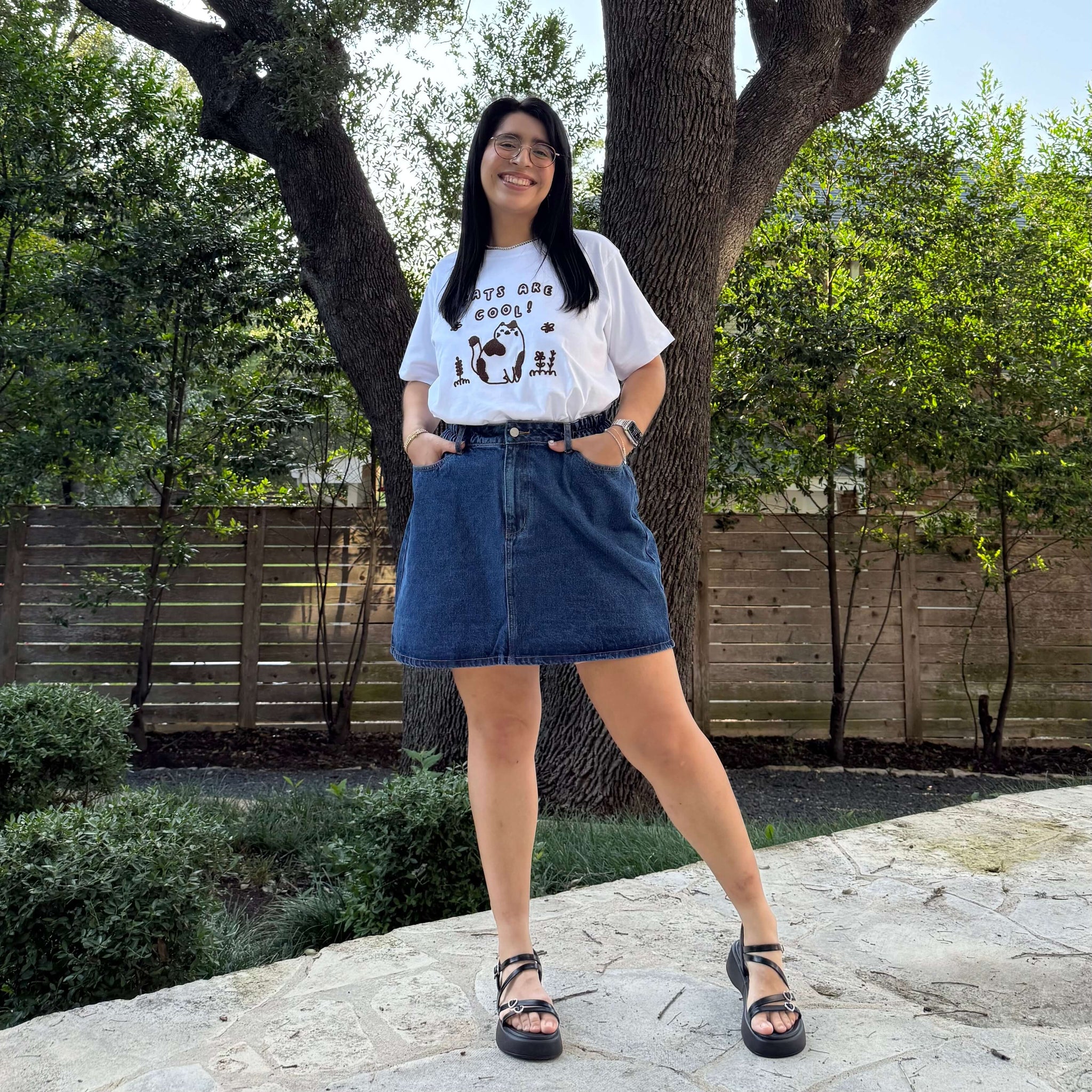 • The FIRST-EVER denim mini skirt for people with bigger hips