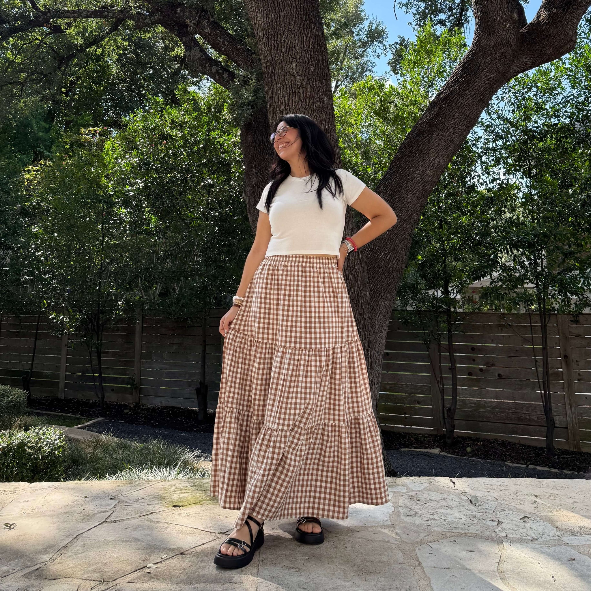 Gingham Long Skirt - Chestnut