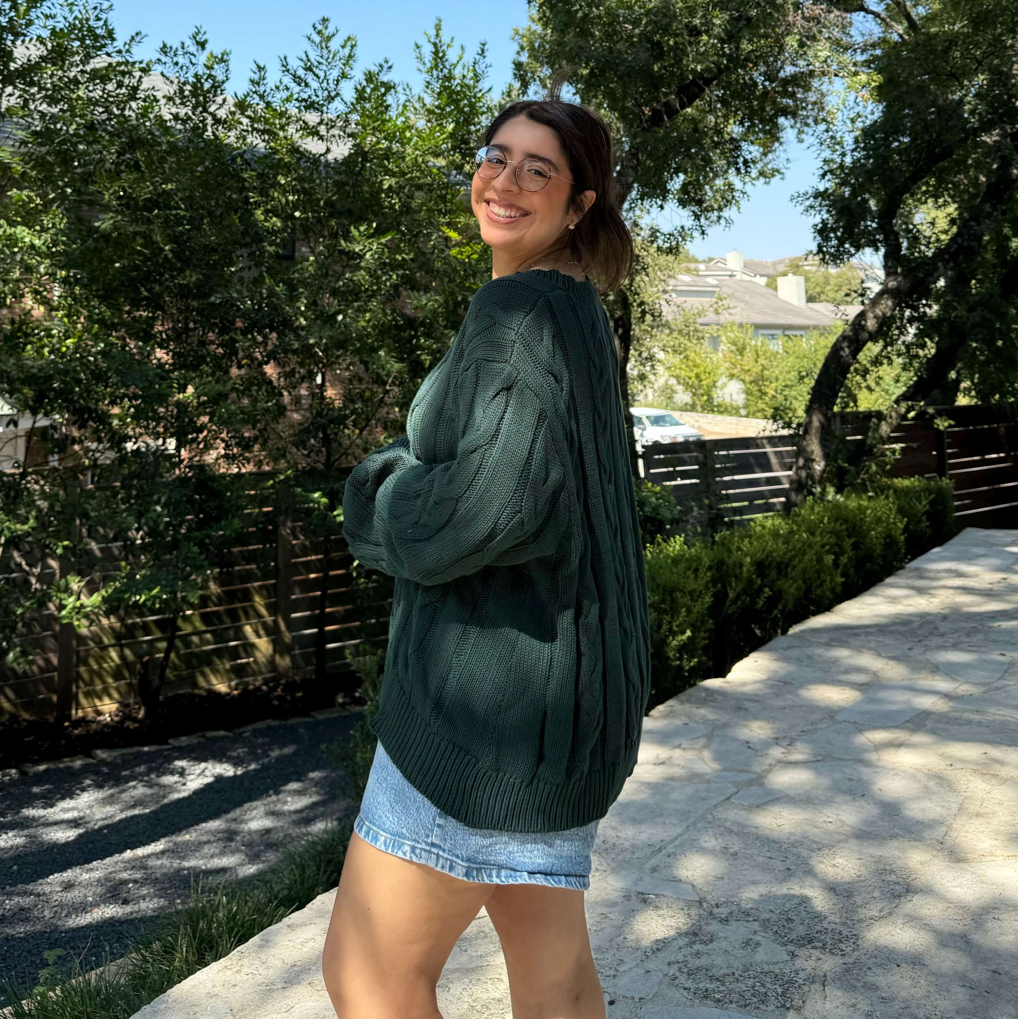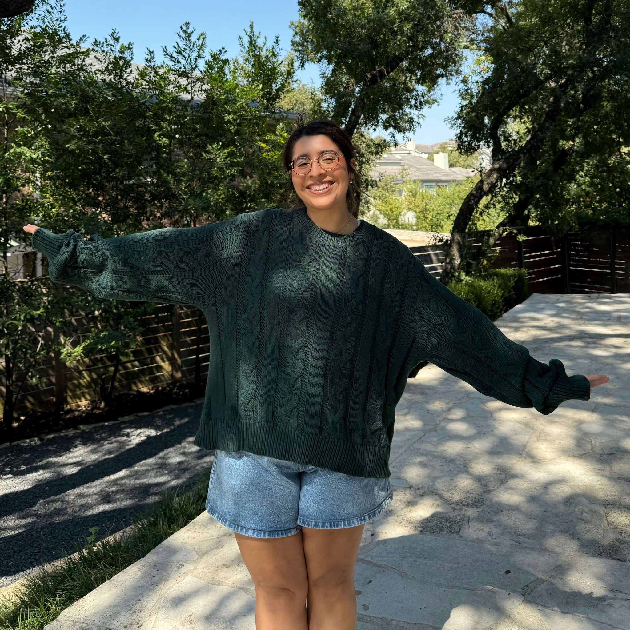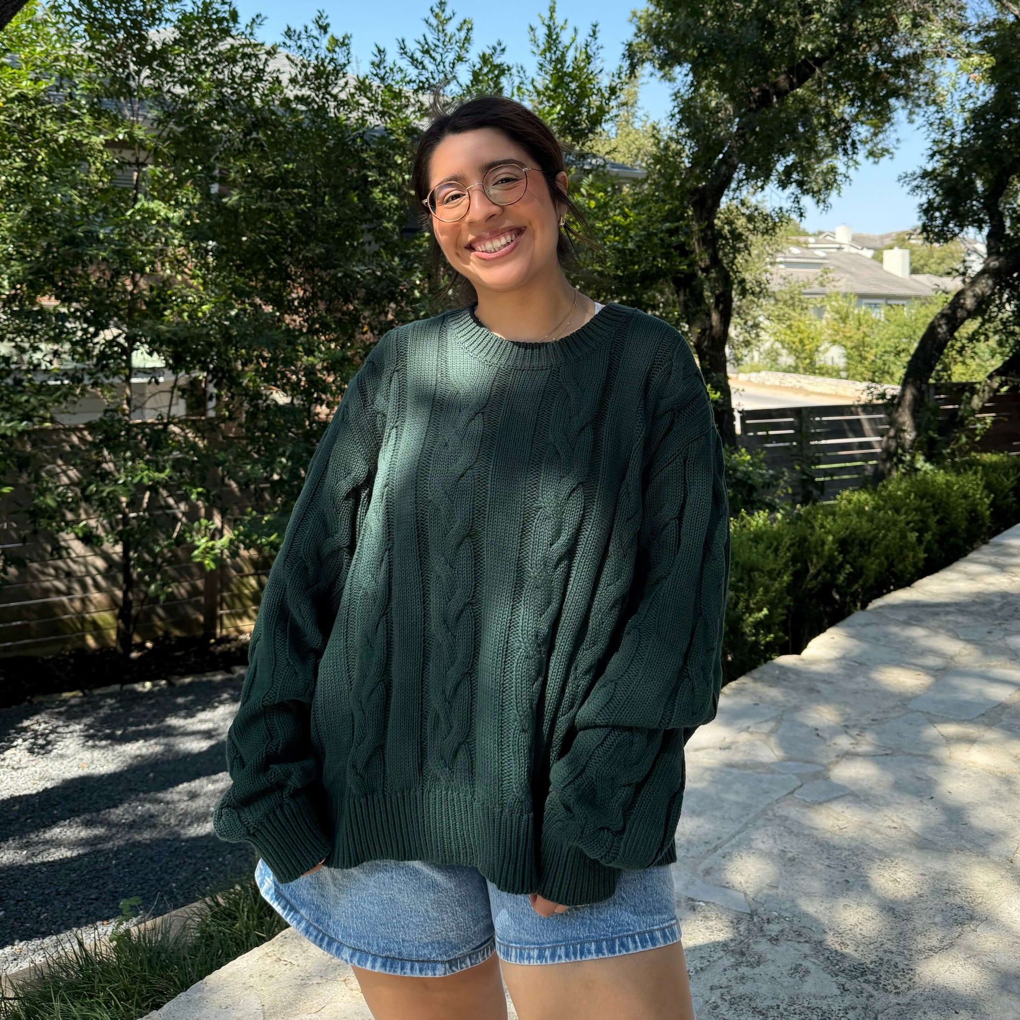 - The first-ever classic cable knit sweater designed to be oversized on bigger hips!