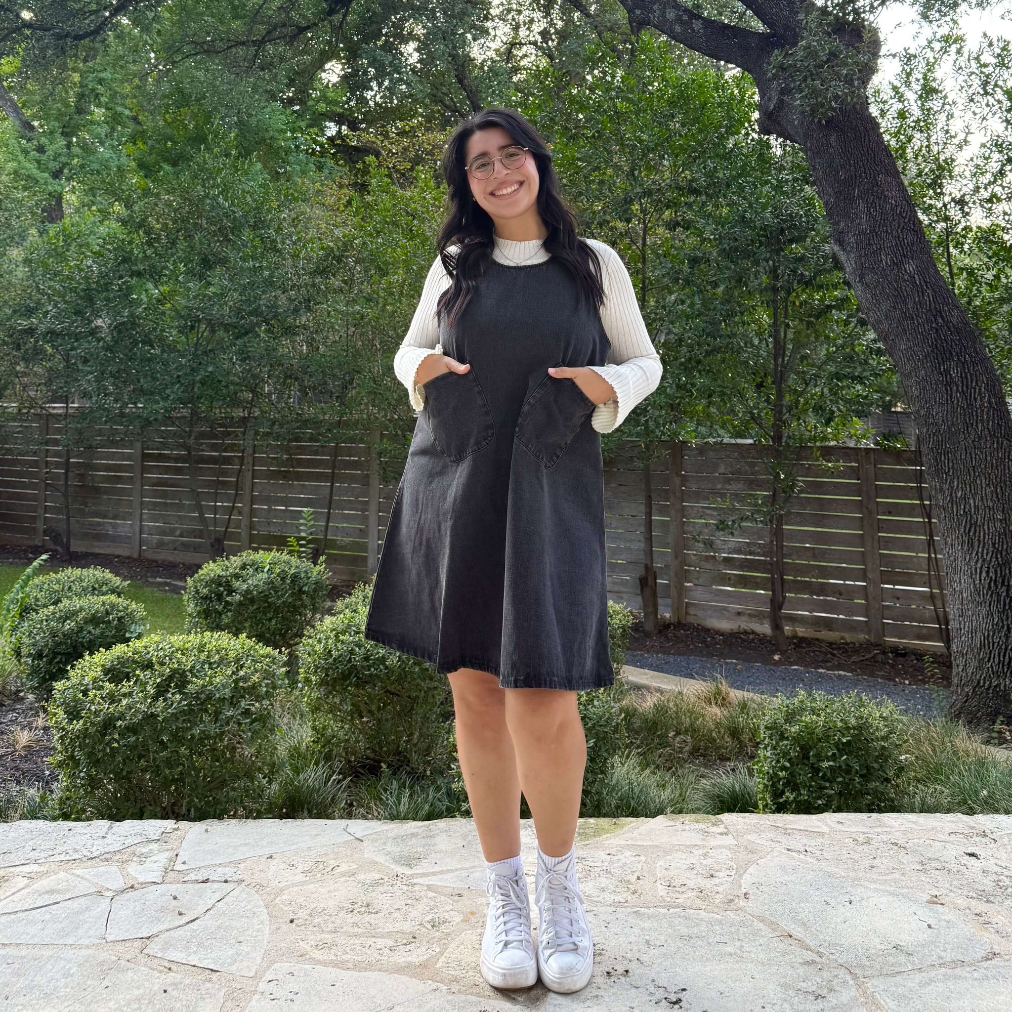 This dress is meant to have a loose fit throughout the body, perfect for layering :)