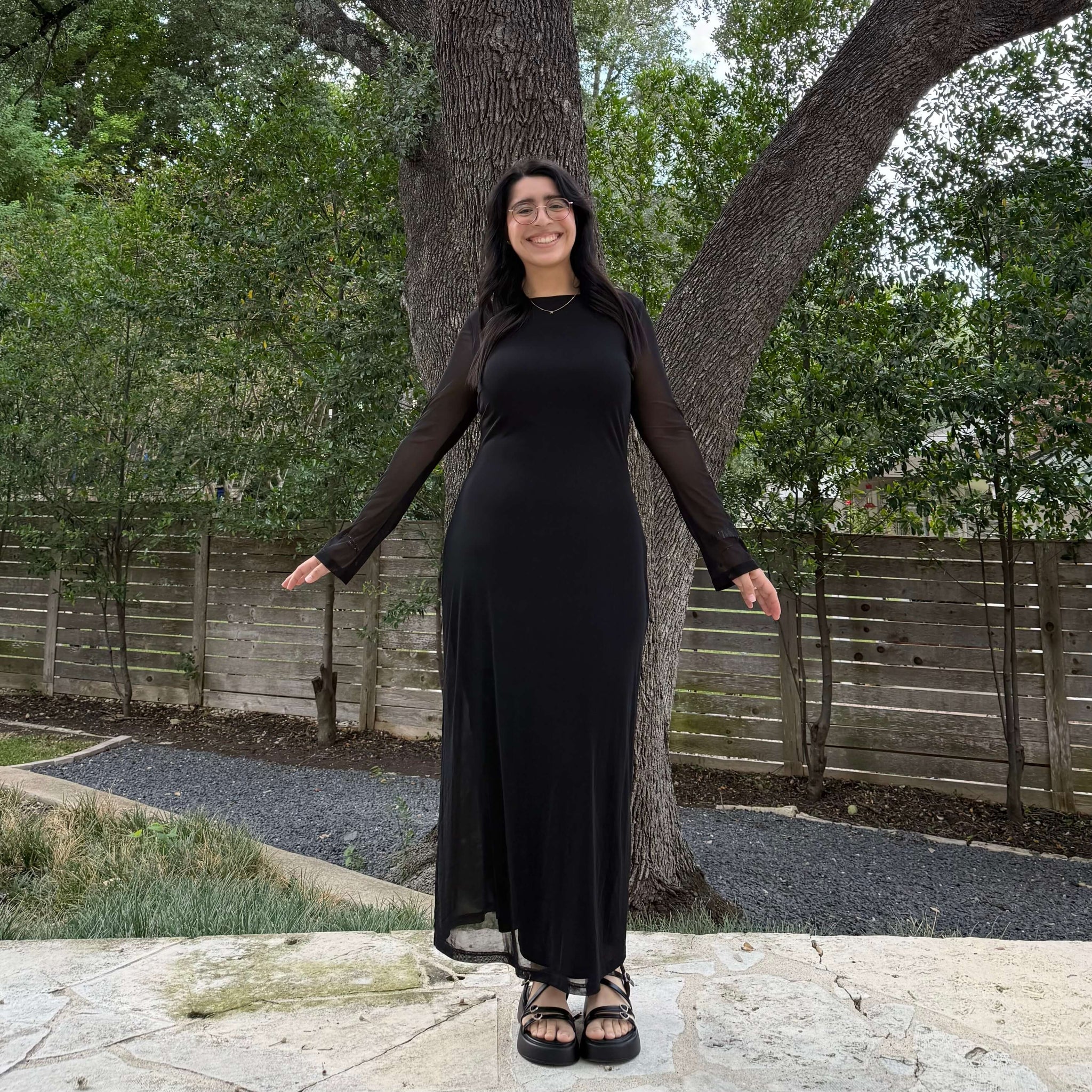 Long-Sleeve Flora Dress - Black